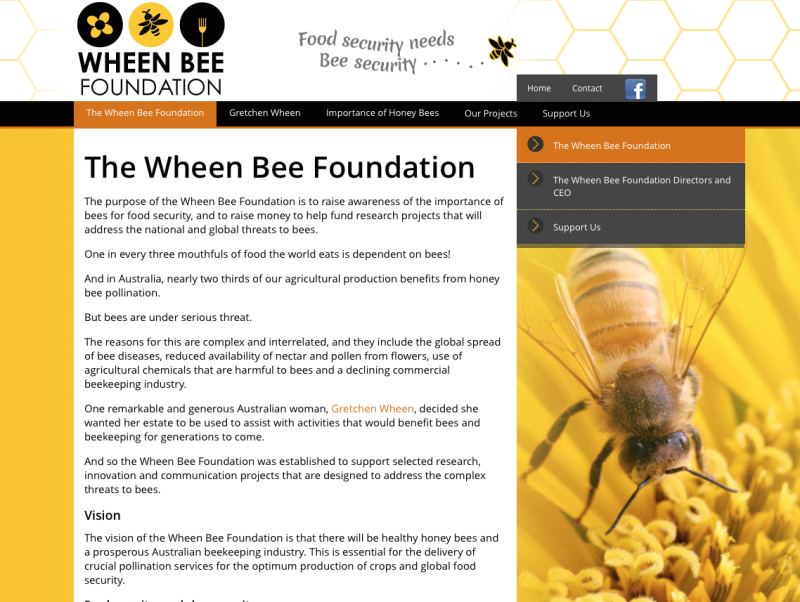 The purpose of the Wheen Bee Foundation is to raise awareness of the importance of bees for food security, and to raise money to help fund research projects that will address the national and global threats to bees.