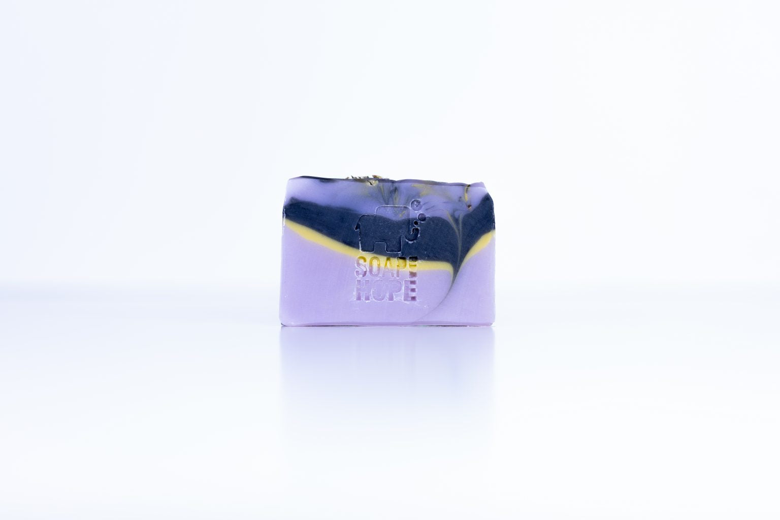 Olive oil, coconut oil, distilled water, lye, shea butter, castor oil, yellow, blue and pink oxides, activated charcoal, lavender essential oil, lavender flower buds.
